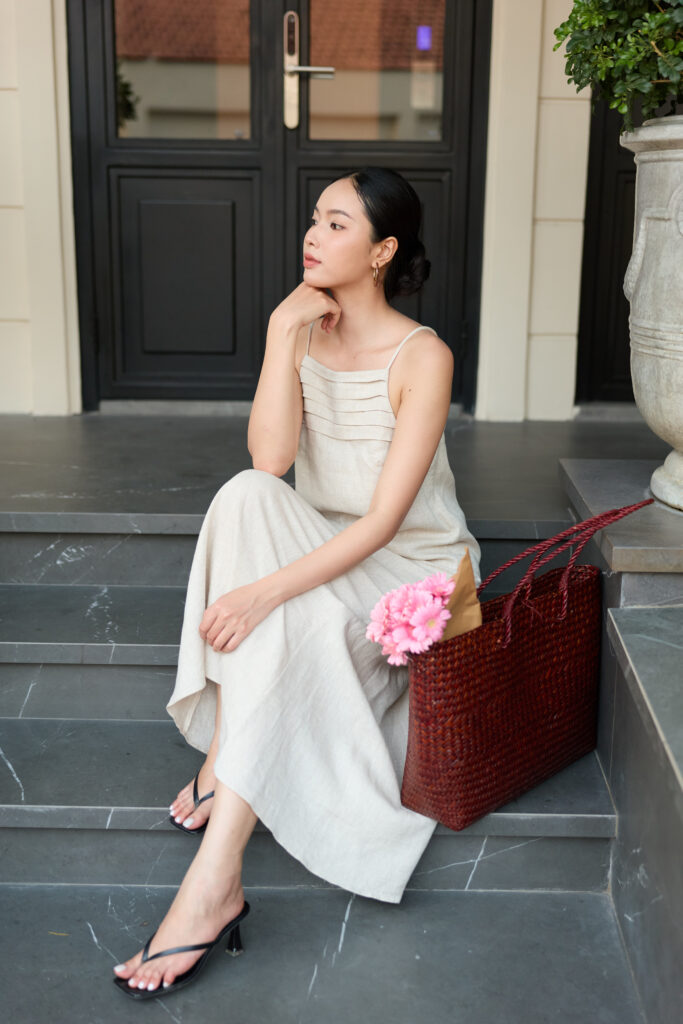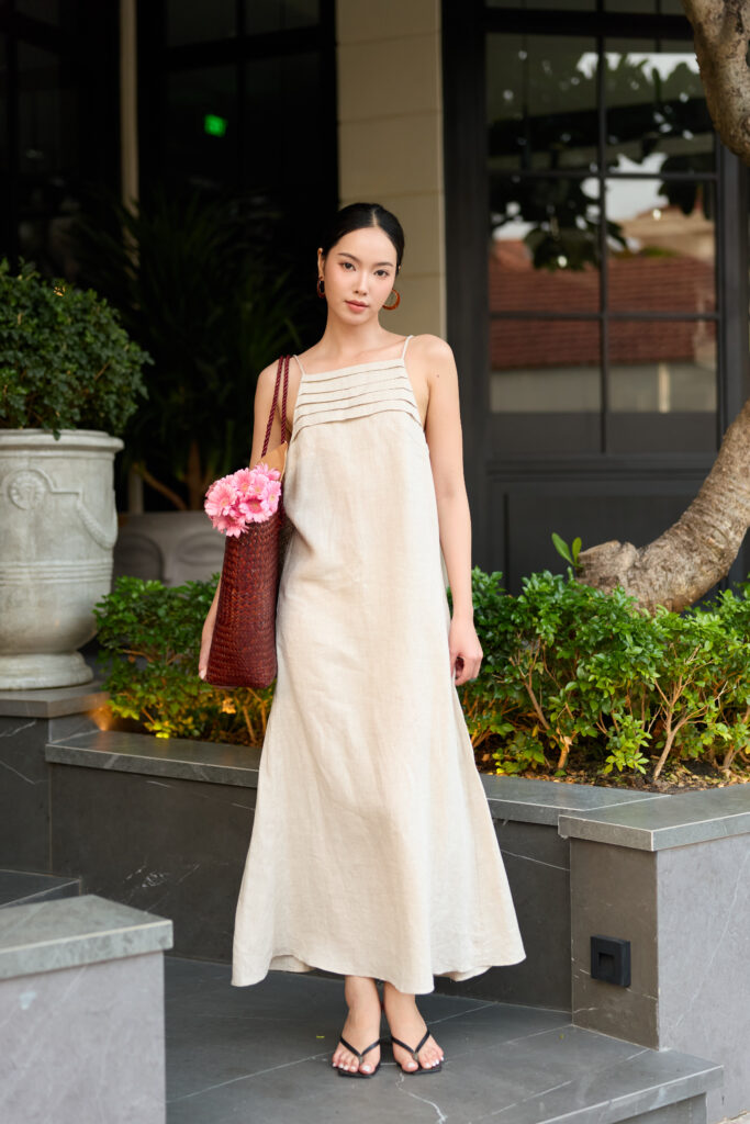 Những chiếc váy được cắt may từ linen chính phẩm, lụa tơ tằm và các dòng sợi tự nhiên, nâng niu từng đường kim mũi chỉ, mang lại cảm giác mềm mại, bồng bềnh và tự do trong từng chuyển động.