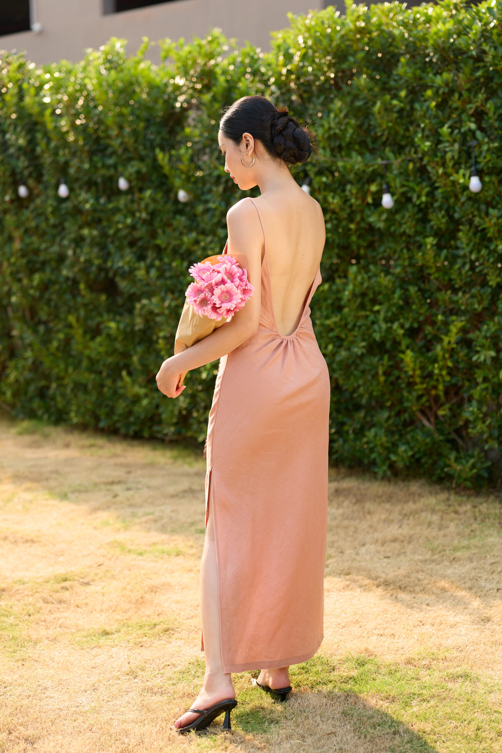 The Yuki dress features a delicate two-strap design with a lined bodice at the front, while the softly gathered back gently embraces your slender silhouette. Crafted from heavyweight premium Pure Linen that has been specially softened, Yuki flows beautifully with side slits with the cutting on the bias, creating an airy, graceful movement that complements you effortlessly.