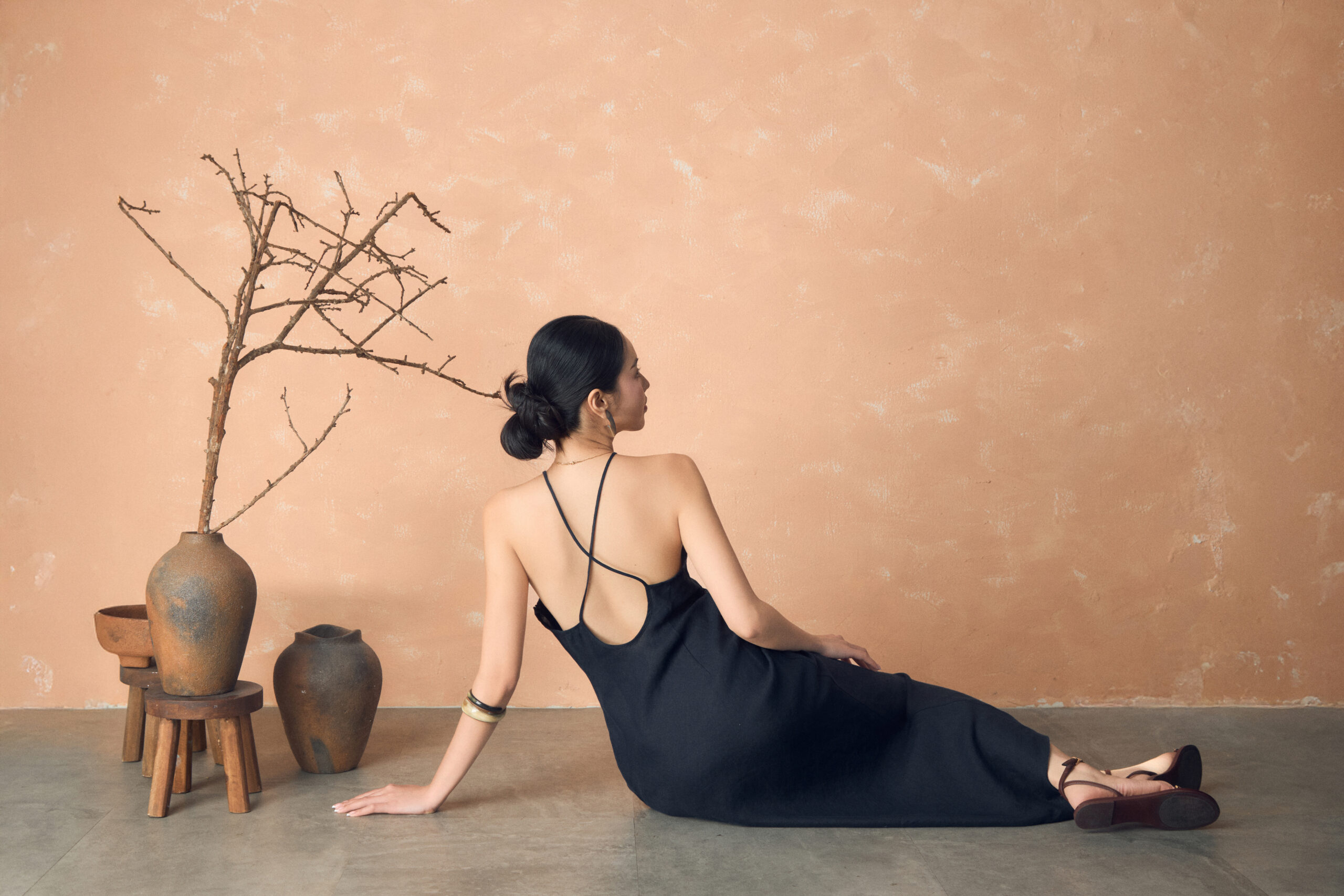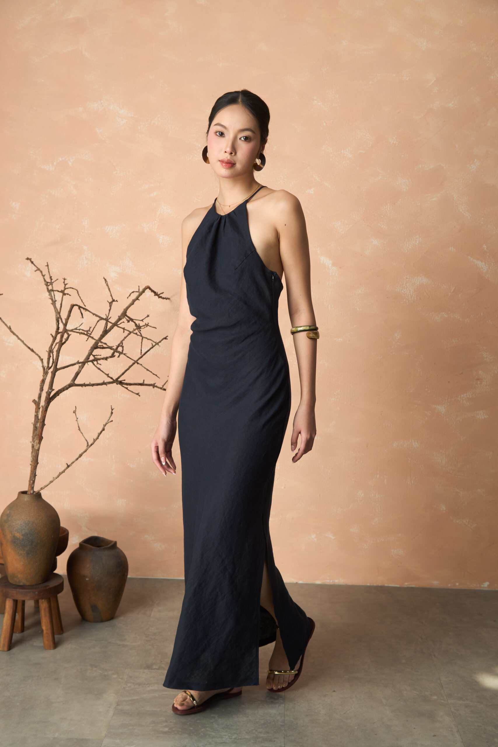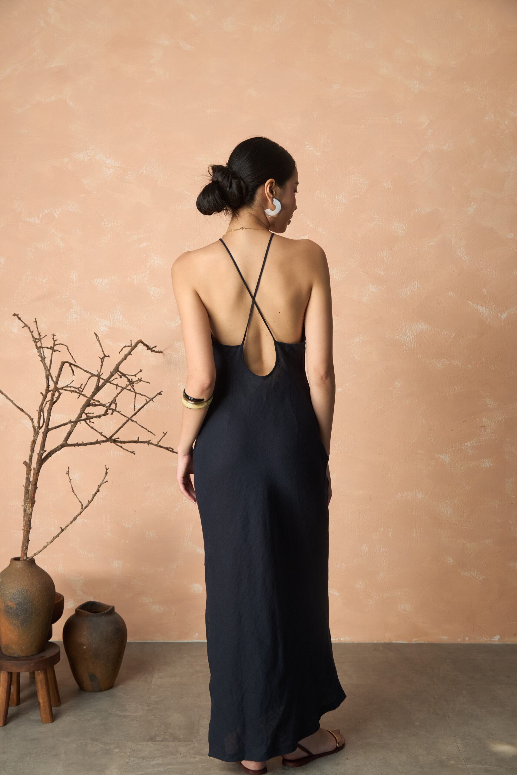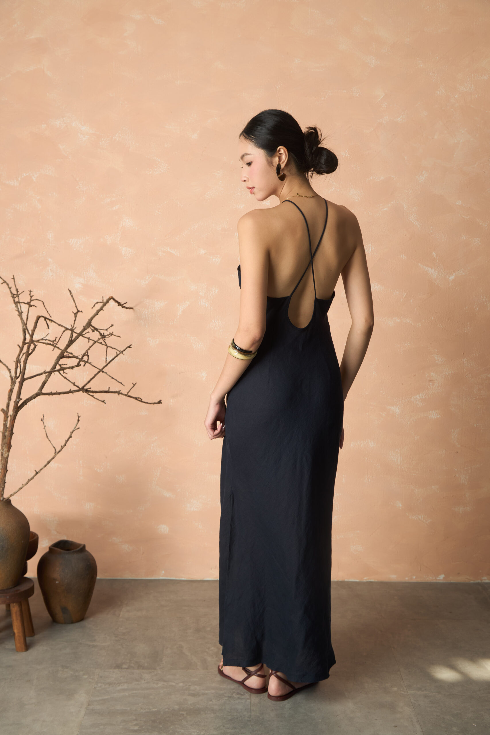 Thân trước được cắt may dáng cổ yếm với chi tiết nhún nhẹ, mang đến vẻ thơ mộng, dịu dàng nhưng vẫn giữ trọn nét mộc tự nhiên của Linen. Thiết kế dây chéo mảnh mai ở thân sau kết hợp khóa kéo tinh tế tại sườn váy giúp bạn dễ dàng diện Emi, đồng thời tôn lên dáng xinh của bạn.