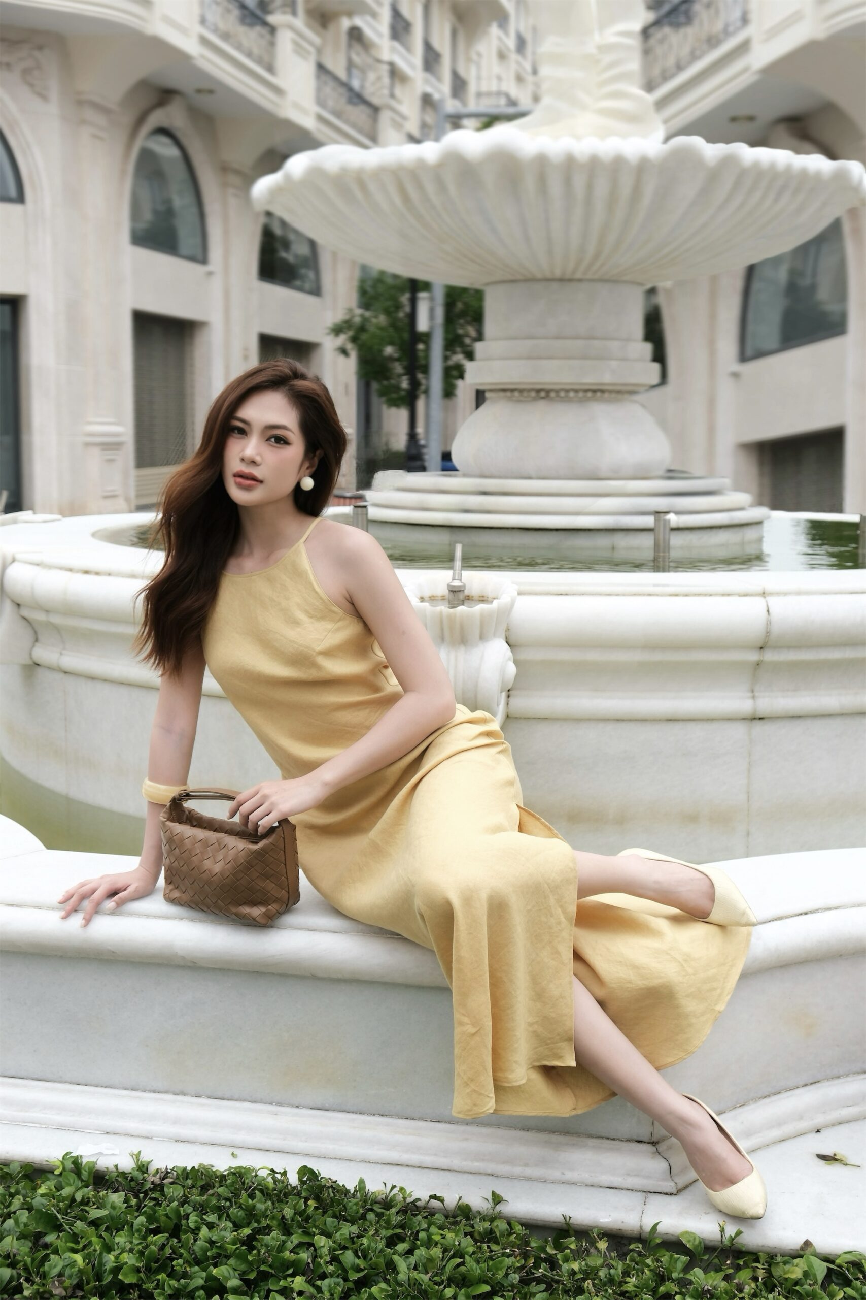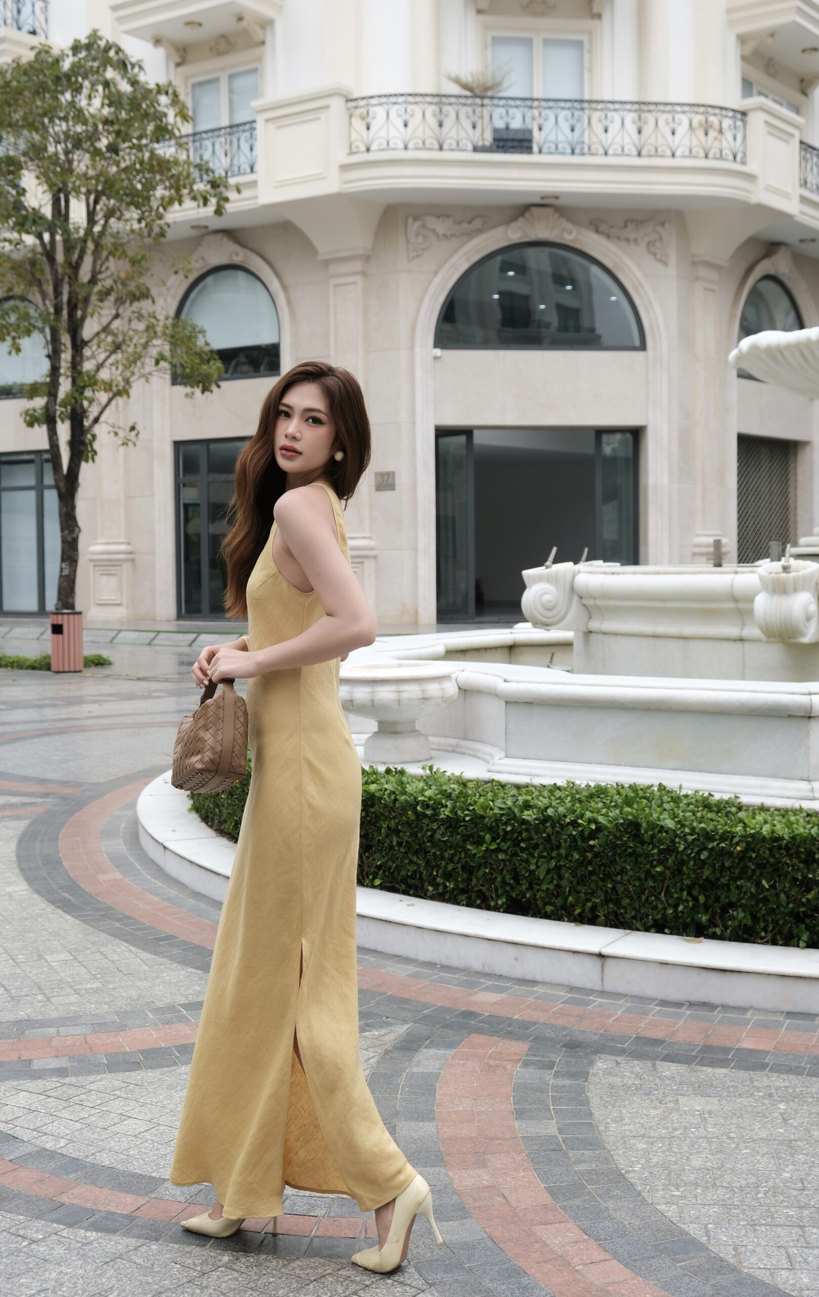 Váy Yuna có thiết kế thân trước dáng yếm mảnh mai trên nền vải Linen đã được xử lí mềm mại. Kĩ thuật cắt chéo sớ vải tạo hiệu ứng bồng bềnh và thướt tha với phần xẻ tà đầy duyên dáng tạo nên một tổng thể tối giản phù hợp với mọi không gian bạn đến.